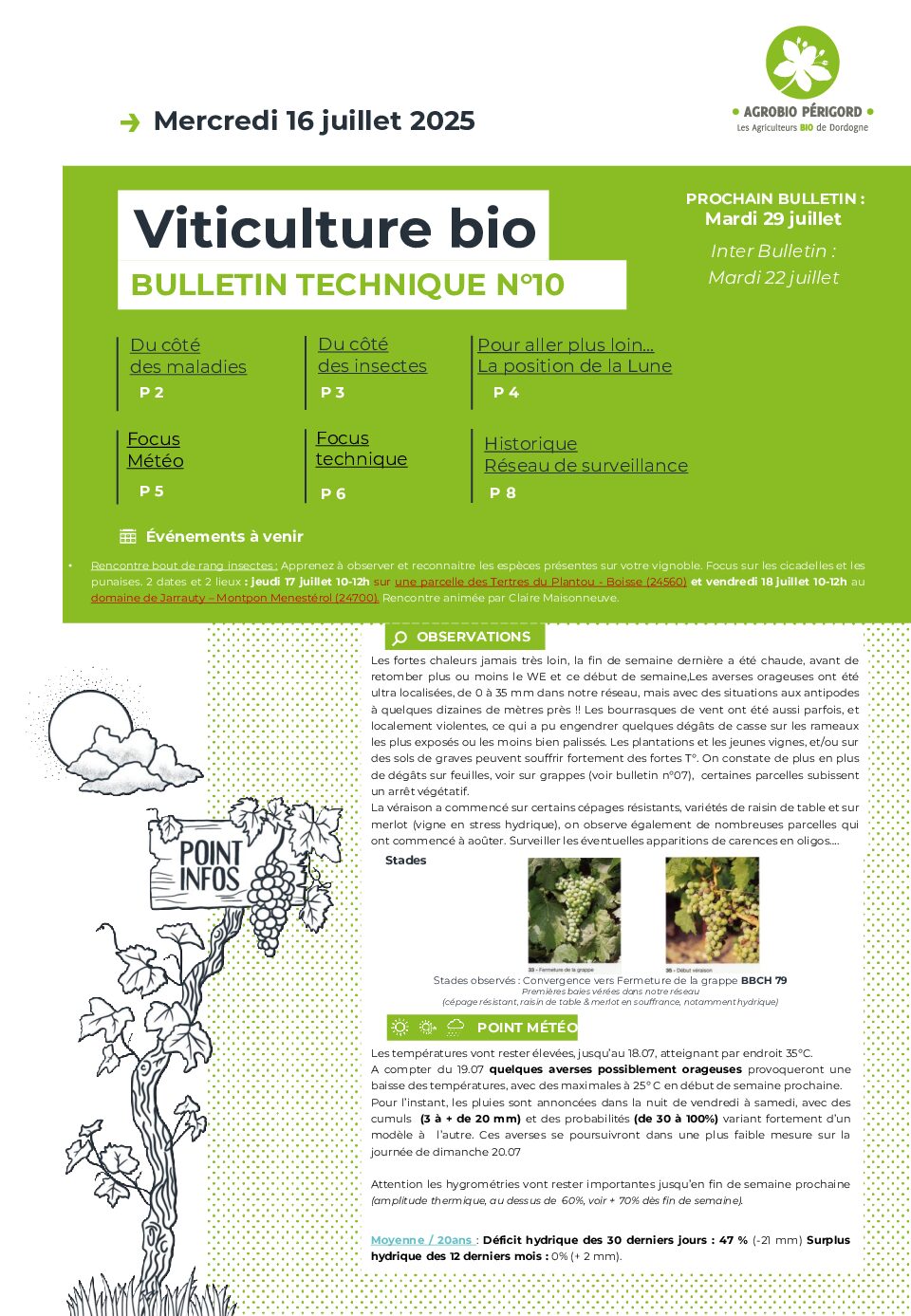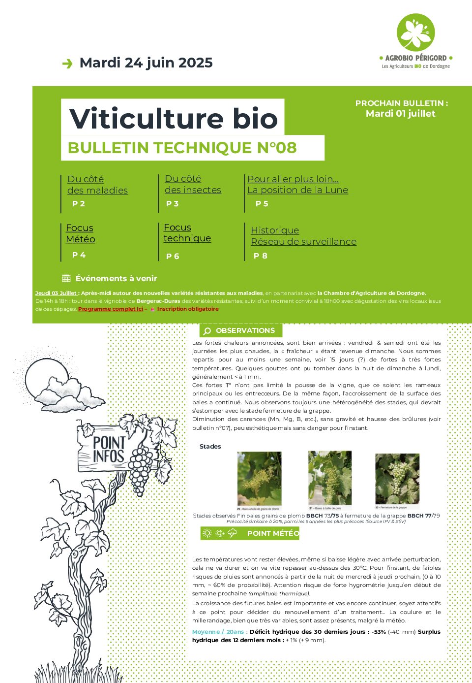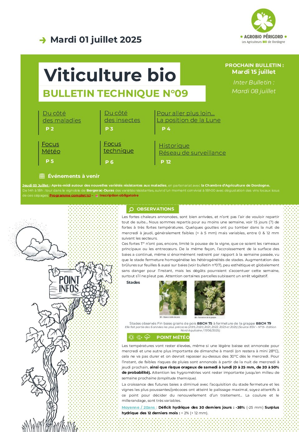 - Une newsletter hebdomadaire en saison, comprenant le bulletin technique d’AgroBio Périgord.